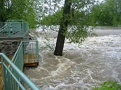 - ↑ Panneau d'information en bordure de la rivière aux Brochets