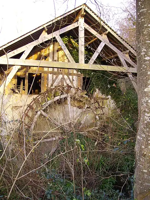 Un moulin, aujourd'hui à l'abandon, est installé sur la course de la rivière.