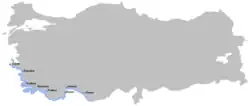 La Riviera turque (également connue comme la Côte Turquoise) est une région géographique le long de la côte méditerranéenne de la Turquie dans les provinces d'Antalya, de Muğla, d'Aydın, le sud de la province d'Izmir et la partie occidentale de la province de Mersin. La combinaison d'un climat favorable, d'une mer chaude propice à l'héliotropisme, d'une côte s'étendant sur un millier de kilomètres sur les bords de la mer Égée et de la mer Méditerranée, et d'un grand nombre de sites naturels et archéologiques, font de la Riviera turque une destination touristique internationalement reconnue[1].