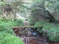 Source de la rivière Rivoal en été, en amont de Bodenna (alias Stêr Bodenna), la rivière part de plus haut vers le montagne Saint-Michel en saison pluvieuse. Le 25 juin 2017, en année sèche, le cours d'eau était à sec en amont de ce point. | |