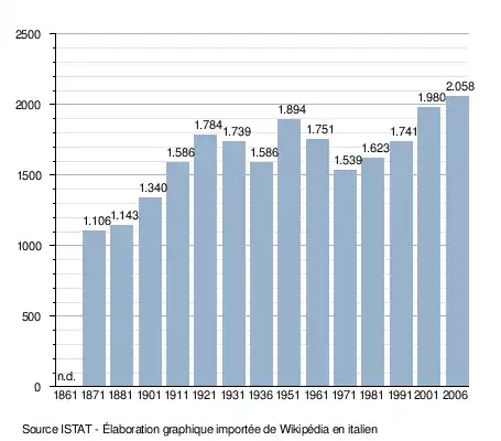 - ↑ (it) Popolazione residente e bilancio demografico sur le site de l'ISTAT.