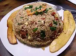 L’arroz frito (riz frit cubain) est très semblable au «riz frit spécial». Aux côtés d’autres plats créoles, il est au menu de nombreux restaurants cubains. Il comprend du jambon, de la viande de porc grillée, des crevettes, du poulet et des œufs, ainsi que divers légumes. Certains restaurants lui ajoutent du lechón (cochon de lait à la cubaine), des queues de homards ou du crabe. Ce sont les Cubains d’origine chinoise qui ont importé ce plat[47],[48].