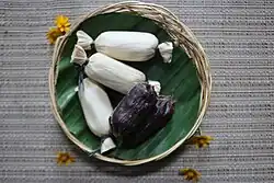 - Lupis : riz gluant additionné de chaux cuit à l'eau bouillante 4 h dans une feuille de bananier, se sert avec coco, sucre (Java)[18].