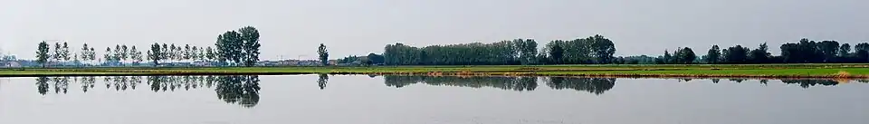 Dans la plaine du Pô, la plus vaste région de riziculture d’Europe, les rizières « traditionnelles » sont recouvertes d’eau, d’une teinte allant du vert tendre à un jaune éclatant, suivant le stade des cultures. Les champs sont quadrillés d’un réseau de canaux. L’un d’eux, alimenté par le Pô et conduisant vers les plaines fertiles du nord-ouest de Verceil et de Novare, est le Canale Cavour, ouvrage important et célèbre portant le nom de l’homme d’État italien, Camillo Benso, comte de Cavour.