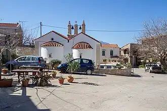 Dans le village, il y a une église dédiée à la Vierge Marie et le Christ le Sauveur, à deux nefs, ornée de fresques remontant à sa construction, en 1381, par la famille du prêtre George Vlatos. La nef de la Vierge Marie est ornée par de peintures vivantes : punitions des damnés, Saints à cheval, Trahison de Judas, préparation de la Croix, Crucifixion, Descente de Croix, etc. Les peintures murales sont d’un style académique, et montrent quelque part le fondateur, George Vlatos. Les détails architecturaux sur les portes et les linteaux sont caractéristiques. Le clocher est l'année 1627.