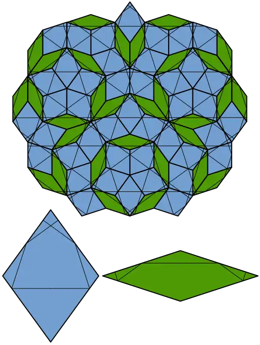 - ↑ Beenker FPM, "Algebraic theory of non periodic tilings of the plane by two simple building blocks: a square and a rhombus", TH Report 82-WSK-04 (1982), Technische Hogeschool, Eindhoven
