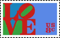 Robert Indiana est le créateur de la sculpture LOVE visible dans le Love Park à Philadelphie en 1970. Cette œuvre représente l’art populaire présent dans la sculpture. En 1973, un timbre est créé, aux États-Unis, reprenant cette image de contribution qui sera imprimée à 32 millions d’exemplaires.