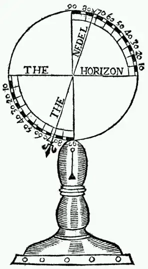 Illustration d'un instrument mesurant l'inclinaison magnétique tirée du livre The Newe Attractive de Robert Norman.