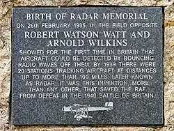 - ↑ (en) Chris Davis, « Sir Robert Alexander Watson-Watt FRS (1892-1973) » (consulté le ).