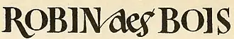 - ↑ Je pense que nous pourrions discuter longtemps sur la véritable personnalité de Robin. Je penche - quant au nom - pour Robert Hode, dont on aurait fait plus tard Hood. Hode est donné dans le recueil de ballades intitulé « La Guirlande de Robin ». Ces ballades, composées aux XIII{e}, XIV{e} et XV{e} siècles, chantées par les trouvères, furent "réinventées" par les poètes romantiques. Je ne crois pas que le titre « de Locksley » soit authentique, mais la tradition l'a établi. Et finalement Robin Hood sera aussi Robin de Locksley. Mowbray et Roger de l'Isle furent seigneurs de Nottingham - sherriffs - je crois que le nom de Gisborne était Fitz-Born (On trouve ce nom dans une liste de nobles normands de la Conquête, avec les Fitz-Obern, les Fitz-James, etc.). Je n'affirmerai pas qu'il fut sherriff de Nottingham. Lui aussi a été consacré par la légende.