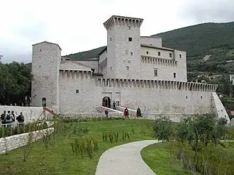 Bien que l'on ait émis l'hypothèse que sa construction pourrait remonter à l'époque lombarde, ce que l'on sait avec certitude, c'est qu'elle est antérieure à la reconstruction de la ville en 1237. En 1242, il a été reconstruit par Frédéric II et a été fréquemment rénové. En 1350, pendant la domination pérugine, un donjon central ( Cassero ) a été ajouté et d'autres interventions ont été menées par Biordo Michelotti. Le Le cardinal Antonio Maria Ciocchi del Monte a vécu dans la forteresse de 1515 à 1533. Pendant la Renaissance, la Rocca est devenue une résidence patricienne, mais en 1888, elle a été transformée en prison. La Rocca est désormais le siège d'un musée de la céramique et d'une exposition historique[1],[2].