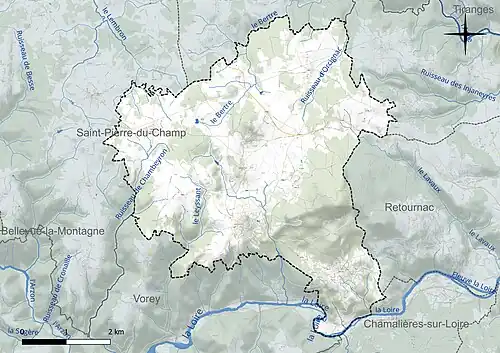 Les communes limitrophes sont Chamalières-sur-Loire, Retournac, Saint-André-de-Chalencon, Saint-Pierre-du-Champ, Solignac-sous-Roche et Vorey.