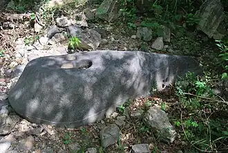En amont, à quelques mètres de cette roche gravée se trouve un puits daté du , encore utilisé aujourd'hui.