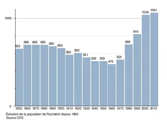 Rochefort compte 1 325 habitants fin 2023[1]. Sa densité de population atteint 51 hab./km2.