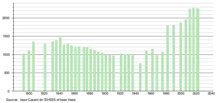 - ↑ Fiches Insee - Populations de référence de la commune pour les années 2006, 2007, 2008, 2009, 2010, 2011, 2012, 2013, 2014, 2015, 2016, 2017, 2018, 2019, 2020, 2021 et 2022.