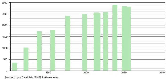 - ↑ Population municipale de référence en vigueur au 1er janvier 2025, millésimée 2022, définie dans les limites territoriales en vigueur au 1er janvier 2024, date de référence statistique : 1er janvier 2022.