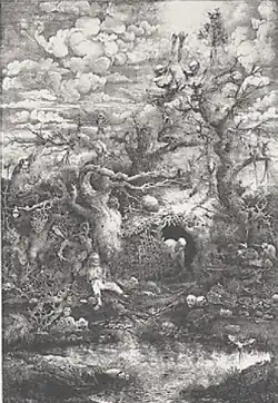 - Mon rêve, publié dans l'Art Moderne, 1883, eau-forte, planche: 22 x 14 cm, Château-Musée de Nemours[8].