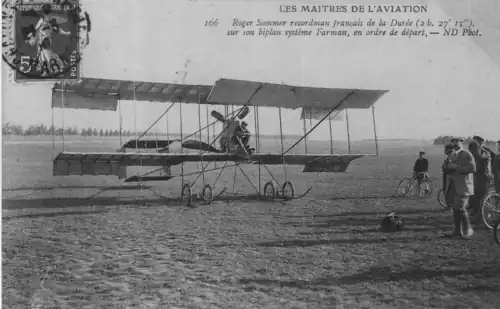 - Le , à l’aérodrome du camp de Châlons-sur-Marne, Sommer établit le nouveau record français de durée de vol : 1 heure 50 minutes et 30 secondes[5].