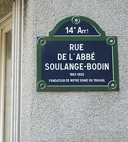 À la demande d'une vieille institutrice, Mademoiselle Acher, ayant fondé une petite école au 176 rue de Vanves, l'abbé Soulange-Bodin accepte de catéchiser les enfants de la Zone, près des Fortifications. Solange-Bodin commence ainsi un patronage auquel il attire de auxiliaires, et de s'occuper de la petite chapelle édifiée au 178 de la rue de Vanves. L'abbé devient le fondateur des Œuvres du Rosaire, qui se développeront bien au-delà de la construction de l'église Notre-Dame du Rosaire en 1911 et dont le fondateur, le chanoine Emmanuel Boyreau, partage sa sensibilité sociale.