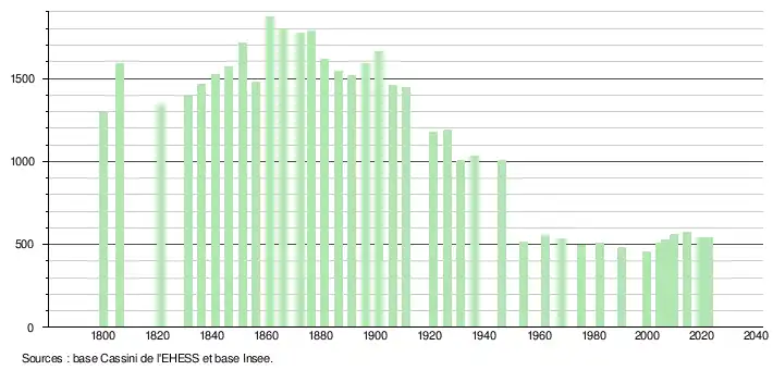 - ↑ Fiches Insee - Populations de référence de la commune pour les années 2006, 2007, 2008, 2009, 2010, 2011, 2012, 2013, 2014, 2015, 2016, 2017, 2018, 2019, 2020, 2021 et 2022.