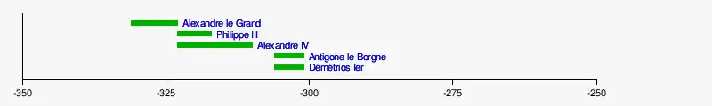 Dernier roi d'Asie Démétrios Ier Poliorcète (306 av. J.-C. - 301 av. J.-C.) | |