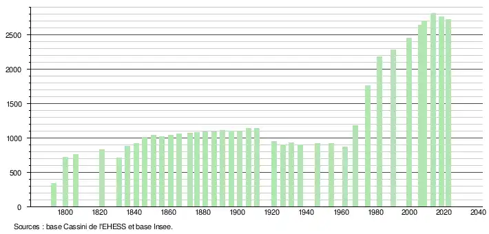 - ↑ Fiches Insee - Populations de référence de la commune pour les années 2006, 2007, 2008, 2009, 2010, 2011, 2012, 2013, 2014, 2015, 2016, 2017, 2018, 2019, 2020, 2021 et 2022.