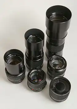 Les objectifs Rokkor ont été produits pour les reflex Minolta en monture MC et MD, et pour les appareils télémétriques Leica à monture M (gamme M-Rokkor).