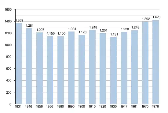 - Sources : INS, Rem. : 1831 jusqu'en 1970 = recensements, 1976 = nombre d'habitants au 31 décembre[3].