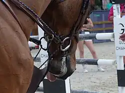 - Utilisation d'une muserolle serrée pour renforcer l'effet, et empêcher le cheval d'ouvrir la bouche pour échapper à la pression du mors sur sa dentition. Afin de l'éviter, la muserolle suédoise est particulièrement appropriée[8] ;