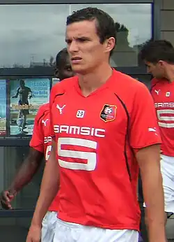 Romain Danzé en 2015 sous les couleurs du Stade rennais FC avec le brassard de capitaine. | ||