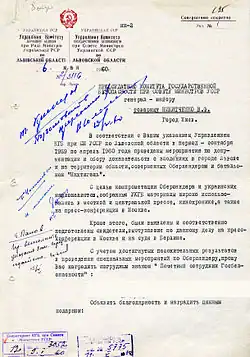 - ↑ М. І. Sergritchouk, Роман Шухевич у документах радянських органів державної безпеки, 1940-1950., vol. I, SBU - Institut national d'état, Kiev, 2007.