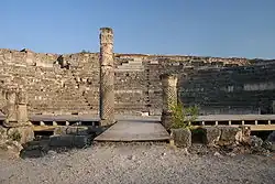 Le premier amphithéâtre de pierre fut érigé à Rome, puis la construction arriva dans les principales villes de tout l'empire. En bas de l'arène de cet amphithéâtre se trouvait la fosse, où les gladiateurs et les fauves se préparaient où attendaient enfermés jusqu'à l'heure du combat. Cette fosse était couverte par un toit de bois sur lequel reposait la scène des luttes. Autour de l'aire elliptique de l'arène se trouvaient des gradins où le public assistait aux « jeux ». Ces amphithéâtres seraient ainsi les témoins, à partir du Ier siècle, de la répression brutale de la part des autorités romaines qui, à certaines époques, s'était abattue sur le peuple chrétien en plein essor.