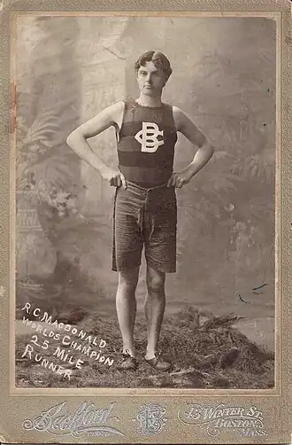 Ronald MacDonald représente le Canada aux Jeux olympiques d'été de 1900 à Paris. MacDonald est aligné pour le marathon, mais termine le dernier des sept finisseurs. Il se plaint que les trois premiers coureurs, qui sont français, auraient pris des raccourcis, et que seuls lui et un Américain auraient effectivement parcouru toute la distance. Aucune preuve n'est cependant apportée et il n'y a aucune disqualification.