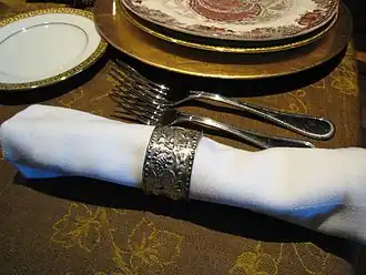 Un rond de serviette est un objet servant à tenir une serviette de table roulée. Il peut être numéroté, ou gravé d’un prénom, de façon à différencier la serviette de chaque personne à chaque repas.