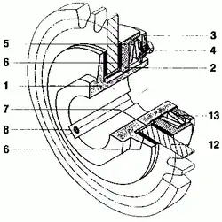 La figure ci-contre montre un limiteur de couple dans lequel l'élément élastique est constitué par deux rondelles Belleville.