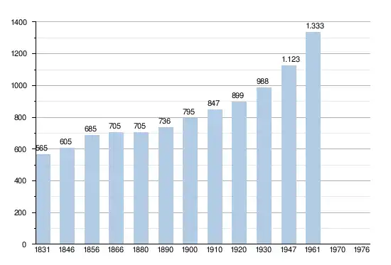 - Sources : INS, Rem. : 1831 jusqu'en 1970 = recensements, 1976 = nombre d'habitants au 31 décembre.