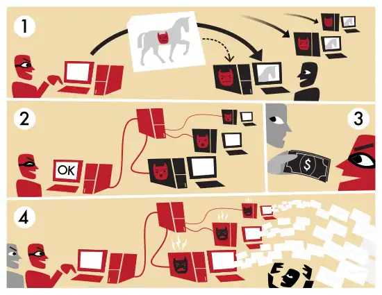L'opération consiste en l'ouverture de portes dérobées, afin de permettre le contrôle des machines (pc, serveurs, etc.), et, d'y installer la charge utile. Le tout, afin de pérenniser l'accès au système[4],[12], ceci constitue une technique très fréquemment utilisée.