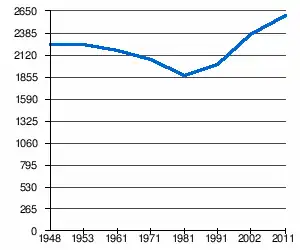 - 1 2 (sr + en) « Livre 20 : Vue d'ensemble comparative de la population en 1948, 1953, 1961, 1971, 1981, 1991, 2002 et 2011, données par localités) » [PDF], pages du recensement de 2011 en Serbie - Institut de statistique de la république de Serbie, (consulté le )