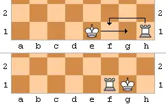 4. Cette règle a été ajoutée aux règles de la Fédération internationale des échecs en 1972 : Sans cette règle, il aurait été légal de promouvoir un pion sur la colonne e en tour, puis d'effectuer un roque verticalement. Ce roque spécial a été découvert par Max Pam et utilisé par Tim Krabbé dans un problème d'échecs avant que les règles n'aient été modifiées pour l'interdire.