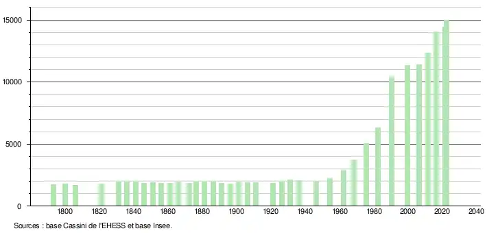 15 006 hab. (2022 en évolution de +6,82 % par rapport à 2016)