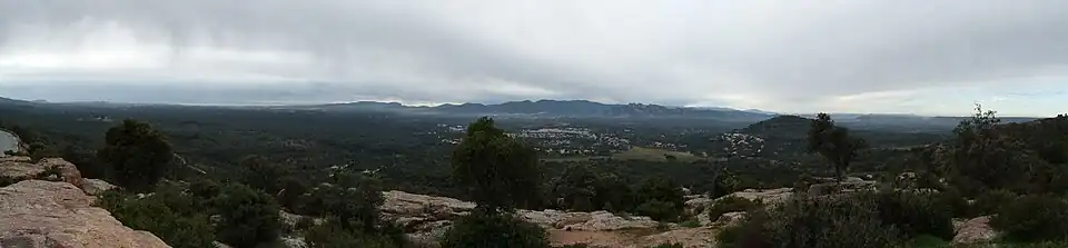 Panoramique sur l'embouchure de l'Argens, de Fréjus au rocher de Roquebrune. Au premier plan, le village de la Bouverie.