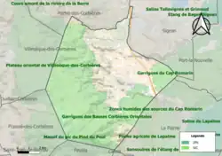 - ↑ « ZNIEFF le « plateau oriental de Villesèque-des-Corbières » - fiche descriptive », sur le site de l'inventaire national du patrimoine naturel (consulté le ).