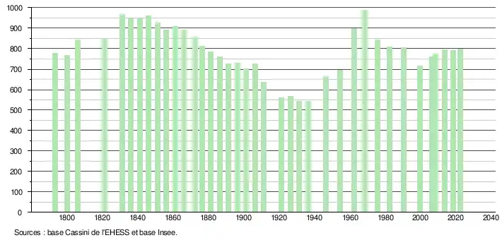 - ↑ Fiches Insee - Populations de référence de la commune pour les années 2006, 2007, 2008, 2009, 2010, 2011, 2012, 2013, 2014, 2015, 2016, 2017, 2018, 2019, 2020, 2021 et 2022.