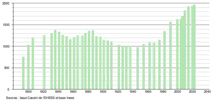 - ↑ Fiches Insee - Populations de référence de la commune pour les années 2006, 2007, 2008, 2009, 2010, 2011, 2012, 2013, 2014, 2015, 2016, 2017, 2018, 2019, 2020, 2021 et 2022.