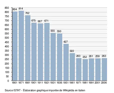- ↑ (it) Popolazione residente e bilancio demografico sur le site de l'ISTAT.