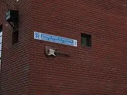 Le est apposé sous le panneau portant l'indication « Rory Gallagher Corner » une sculpture en bronze, réplique de la guitare électrique Stratocaster de 1961 de Rory Gallagher.