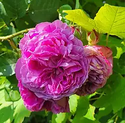 • Rosa ×centifolia, à fleurs roses, est l'hybride type :