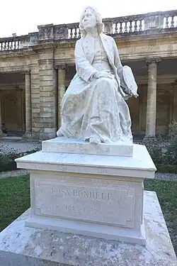Un Monument à Rosa Bonheur (1910) en marbre par Gaston Leroux, la représentant assise et tenant une palette, orne le jardin public de Bordeaux. Le modèle en plâtre a été acquis par la Ville de Bordeaux en 1903[69].