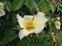 - 'Mermaid', rosier grimpant à grandes fleurs simples jaune canari qui fleurit de juillet à l'automne, est le seul encore cultivé. C'est Rosa bracteata × rosier thé jaune à fleurs doubles[1].