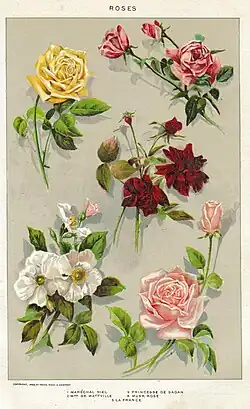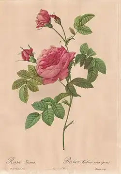 - ↑ Charlotte Testu, Les roses anciennes, Paris, La Maison rustique - Flammarion, (ISBN 2-7066-0139-6), p. 13..